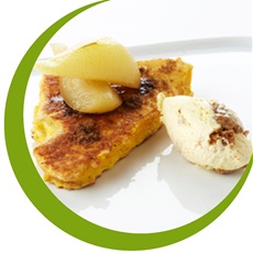Schik de wentelteefjes op de borden. Leg de peertjes er op en giet er wat van het kookvocht over.